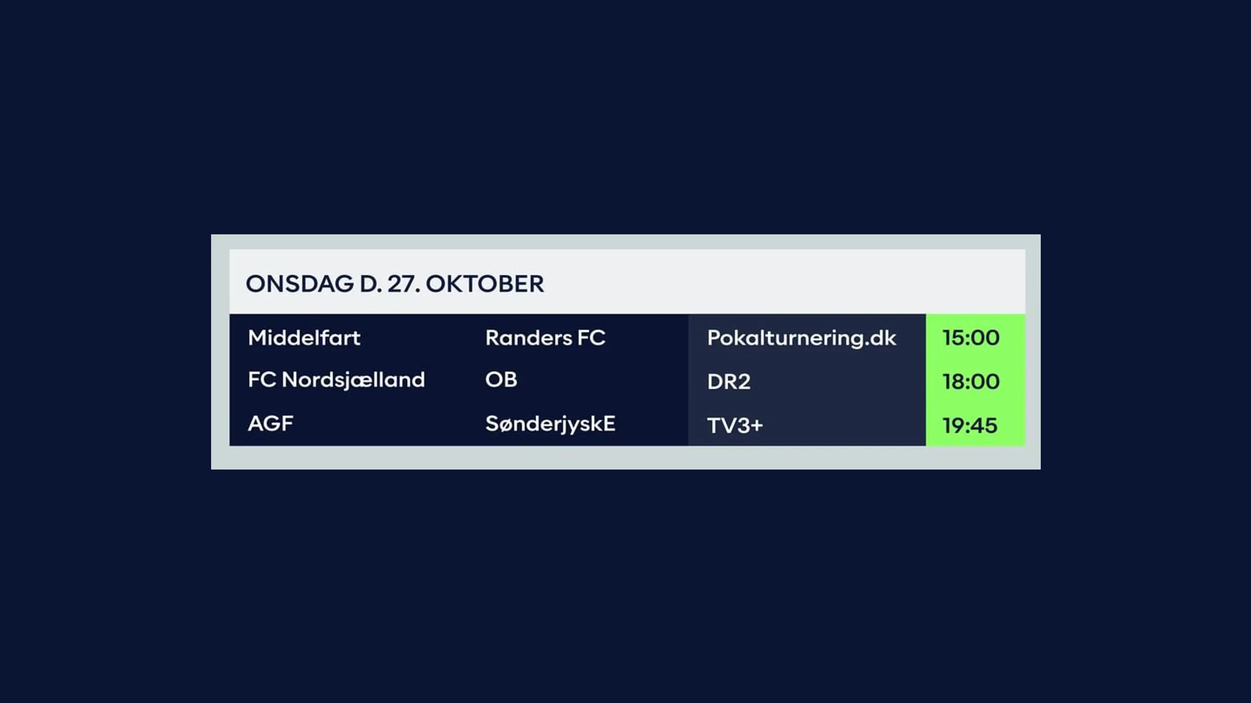 Middelfart møder de forsvarende pokalmestre fra Randers FC, FC Nordsjælland får besøg af OB og endelig tager AGF imod SønderjyskE. Der trækkes i morgen torsdag d. 28. oktober lod til kvartfinalerne