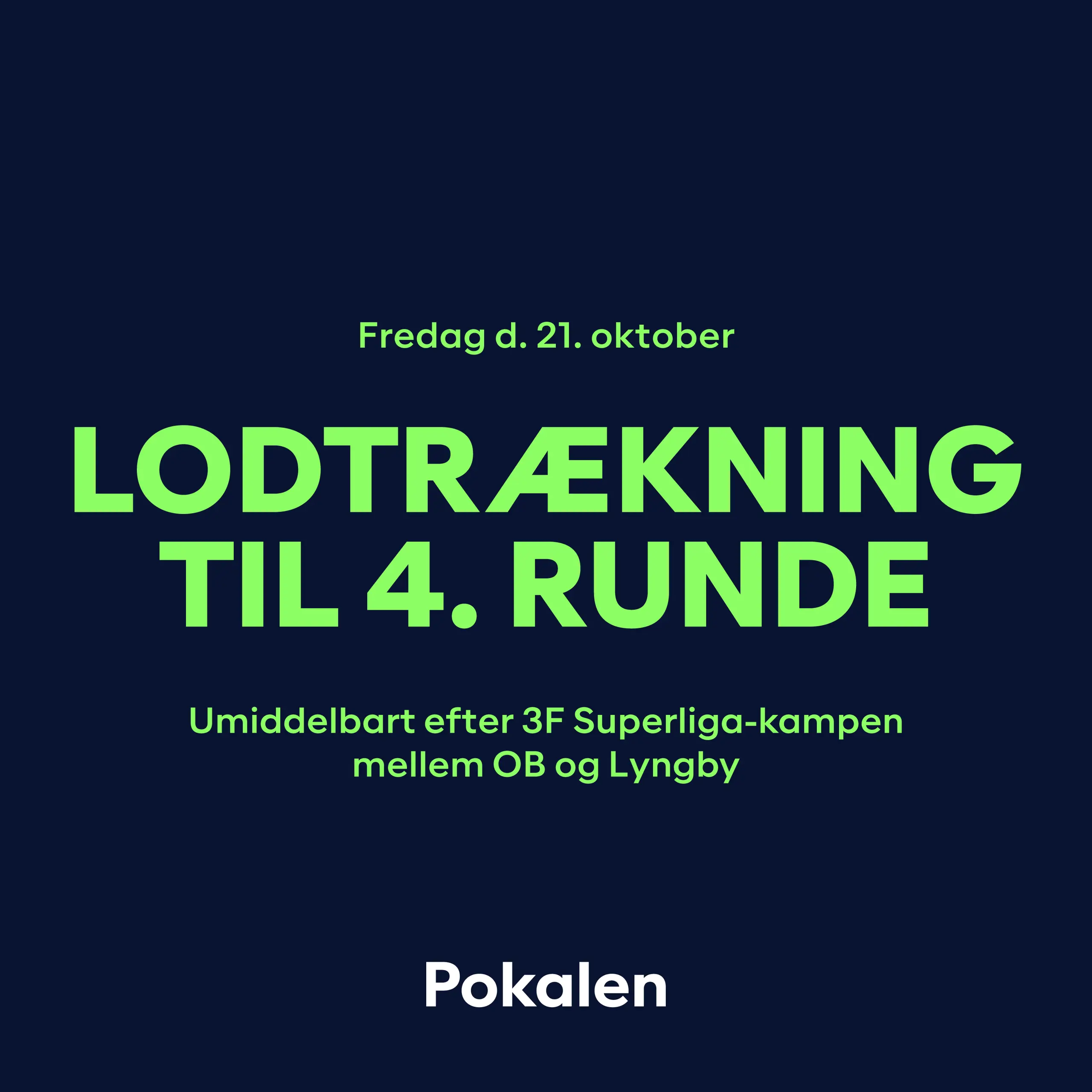 19. oktober 2022 Lodtrækning til ottendedelsfinalerne Der trækkes lod til ottendedelsfinalerne i Pokalen på fredag d. 21. oktober umiddelbart efter kampen i 3F Superliga mellem OB og Lyngby og kan følges på TV3 Sport – Drømmen Lever 5. december 2025 De første tre kvartfinaler spillet 30. oktober 2025 Resultatet af lodtrækningen til kvartfinalerne i Oddset Pokalen 29. oktober 2025 Ottendedelsfinaler - 5 hold klar til kvartfinalerne 25. september 2025 FC Nordsjælland videre som sidste hold 24. september 2025 Resultatet af lodtrækningen til 4. runde i Oddset Pokalen