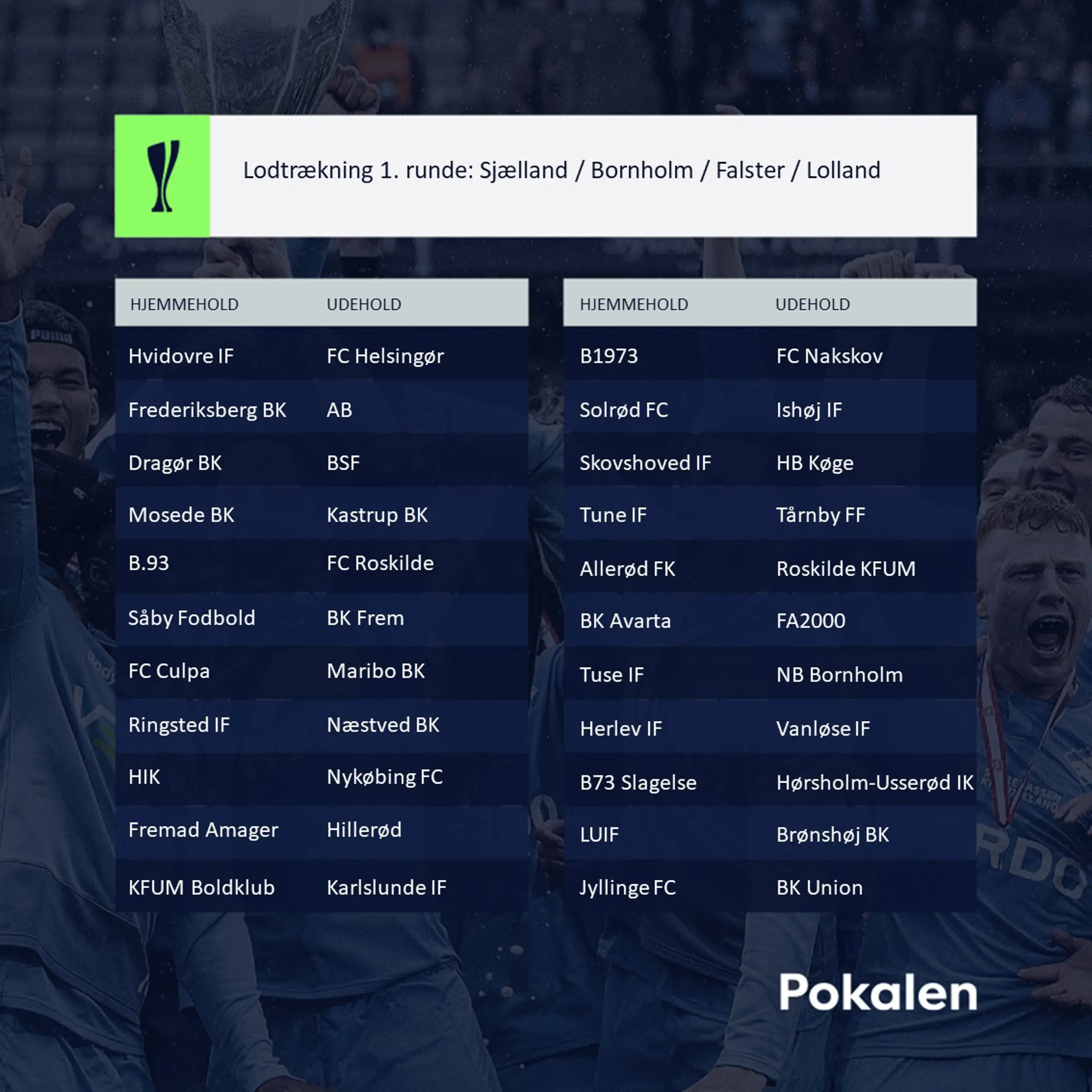 5. juli 2022 Så blev der trukket lod til 1. runde i Pokalen – se alle kampene her. Kampene afvikles i dagene 2. – 4. august, kampprogrammet er klar i starten af næste uge.