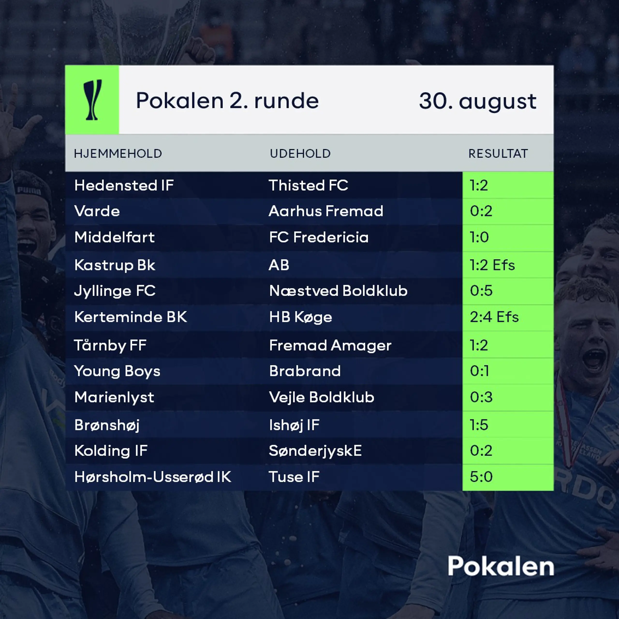 Stor pokalaften er slut - 12 hold klar til 3. runde
