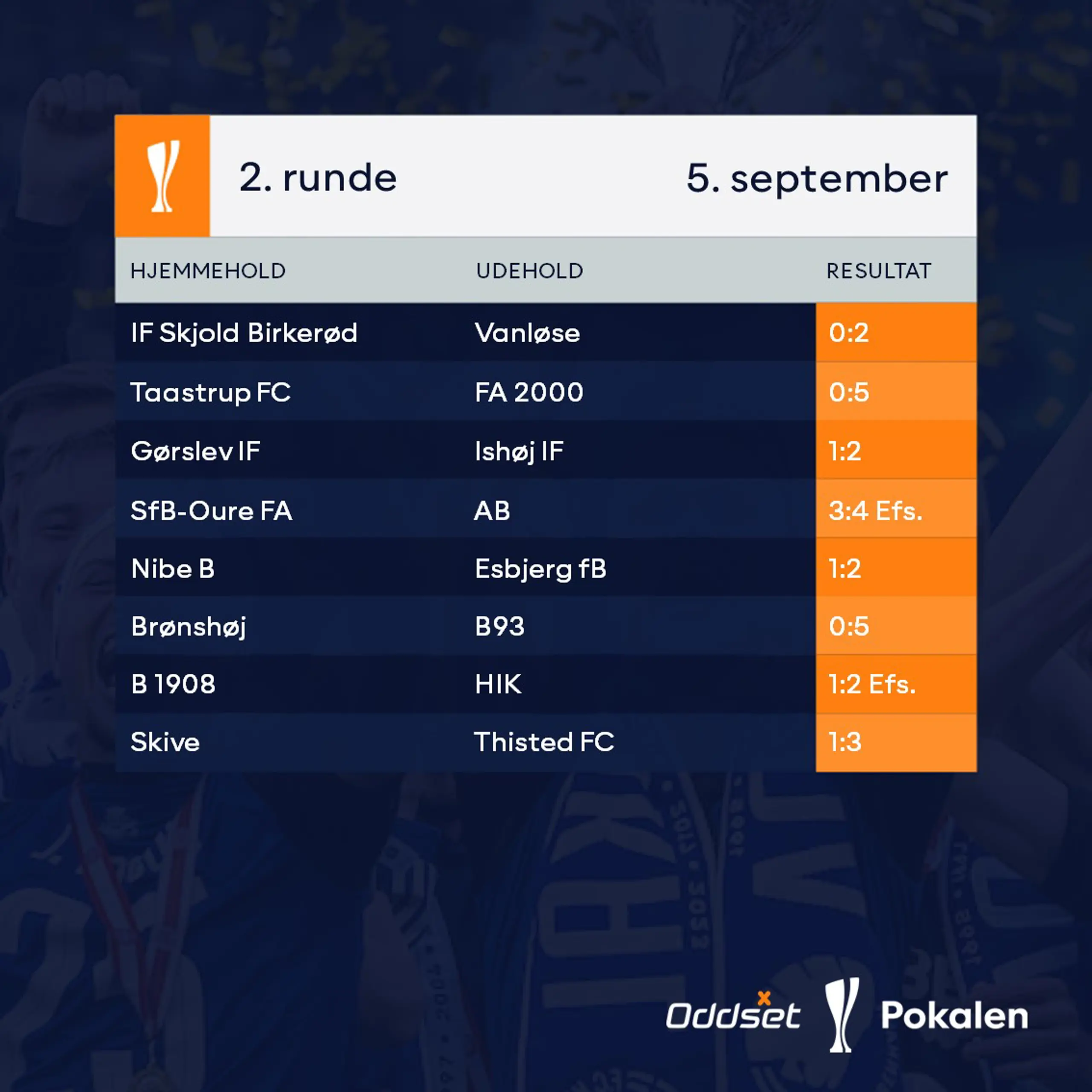 5. september 2023 2. runde sparket i gang Så fik vi sparket gang i 2. runde. Der var flere tætte opgør hvor overraskelsen lurede, men de første 8 hold er klar til 3. runde – Drømmen Lever 5. december 2025 De første tre kvartfinaler spillet 30. oktober 2025 Resultatet af lodtrækningen til kvartfinalerne i Oddset Pokalen 29. oktober 2025 Ottendedelsfinaler - 5 hold klar til kvartfinalerne 25. september 2025 FC Nordsjælland videre som sidste hold 24. september 2025 Resultatet af lodtrækningen til 4. runde i Oddset Pokalen