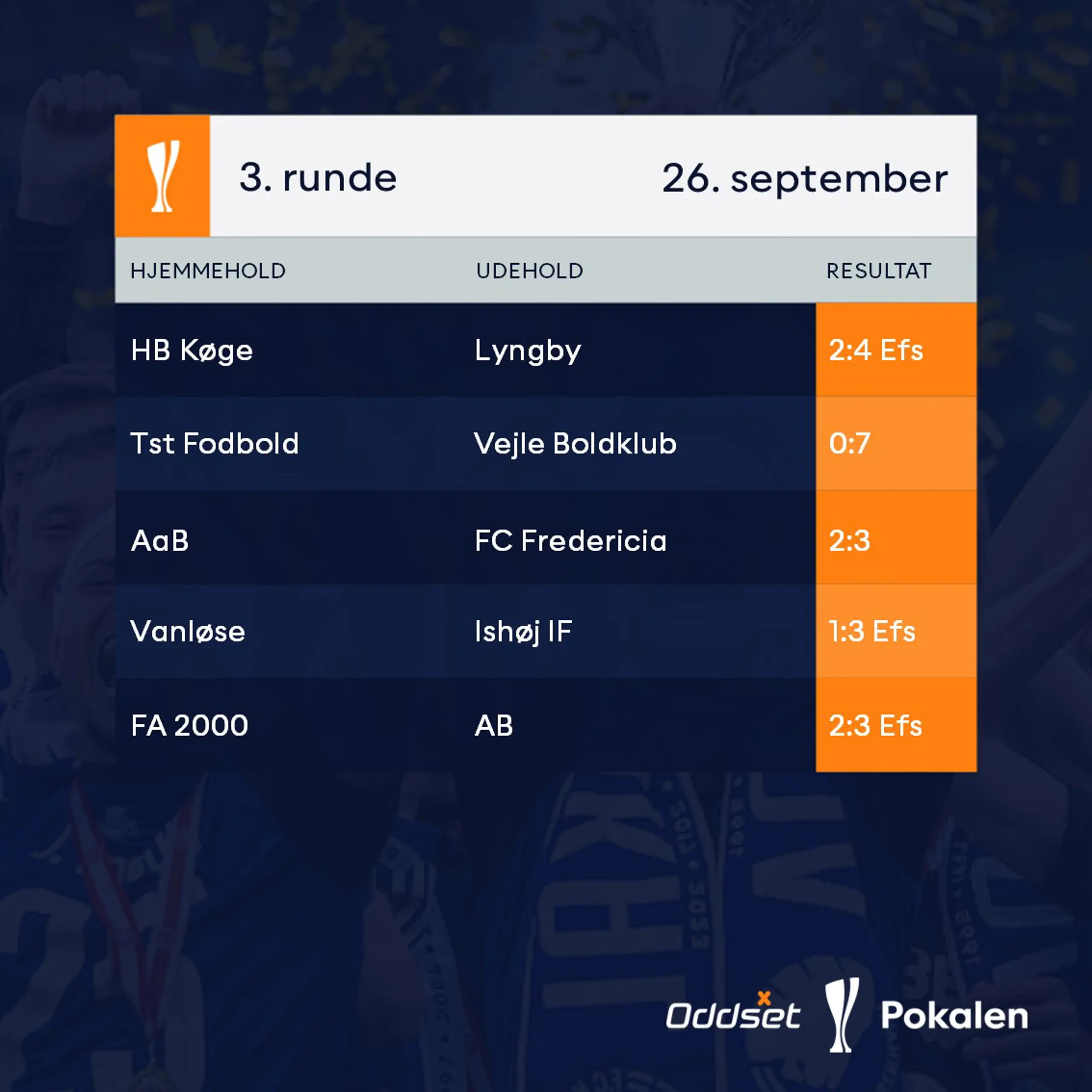 26. september 2023 De første 5 hold er klar til 4. runde Så fik vi sparket 3. runde i gang og det var med både en storsejr og tætte kampe – hele tre kampe skulle i forlænget spilletid før det stod klart hvem der er klar til 4. runde – Drømmen Lever 5. december 2025 De første tre kvartfinaler spillet 30. oktober 2025 Resultatet af lodtrækningen til kvartfinalerne i Oddset Pokalen 29. oktober 2025 Ottendedelsfinaler - 5 hold klar til kvartfinalerne 25. september 2025 FC Nordsjælland videre som sidste hold 24. september 2025 Resultatet af lodtrækningen til 4. runde i Oddset Pokalen