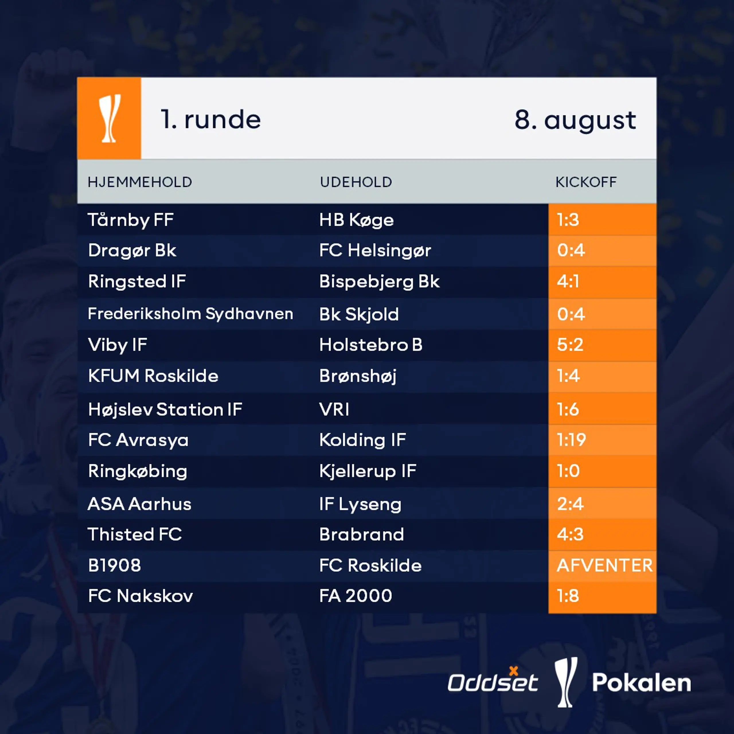 En lang og stor pokalaften er ved at være slut, og det blev med masser af drama og ikke mindst mål!! B93 satte ny rekord i de afsluttende runder med en 16-0 sejr, men det holdt kun i 45 minutter, nu har Kolding IF rekorden for største sejr da de her til aften vandt hele 19-1! Og i morgen venter yderligere 11 kampe – se alle resultater og kampprogrammet her på siden under fanen kommende kampe – Drømmen Lever