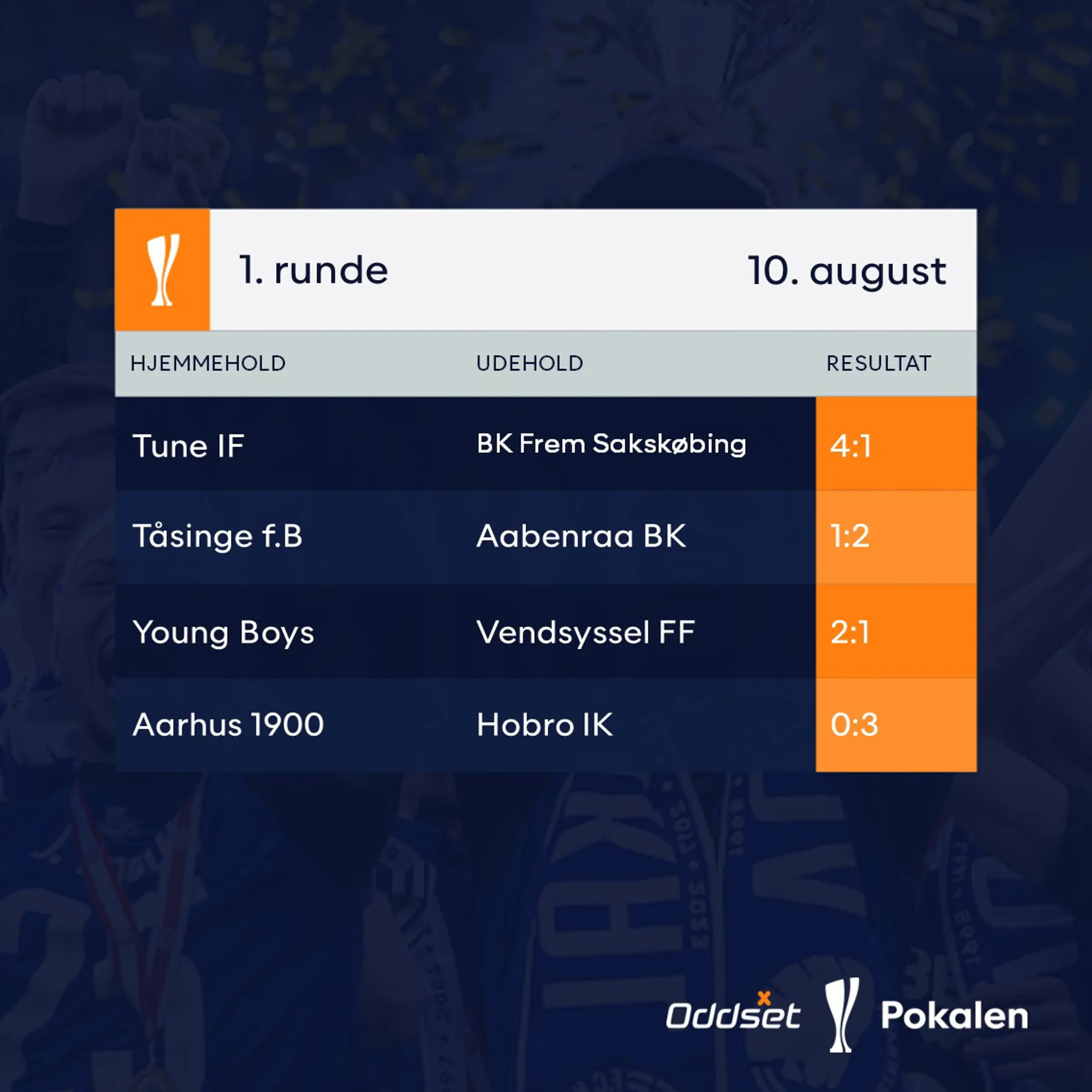10. august 2023 Yderligere 4 hold klar til 2. runde Så er yderligere 4 hold klar til Oddset Pokalens 2. runde! Lodtrækning til 2. runde er i morgen fredag kl. 12:00 og kan følges på pokalturnering.dk og Pokalens Facebook side – Drømmen Lever 5. december 2025 De første tre kvartfinaler spillet 30. oktober 2025 Resultatet af lodtrækningen til kvartfinalerne i Oddset Pokalen 29. oktober 2025 Ottendedelsfinaler - 5 hold klar til kvartfinalerne 25. september 2025 FC Nordsjælland videre som sidste hold 24. september 2025 Resultatet af lodtrækningen til 4. runde i Oddset Pokalen