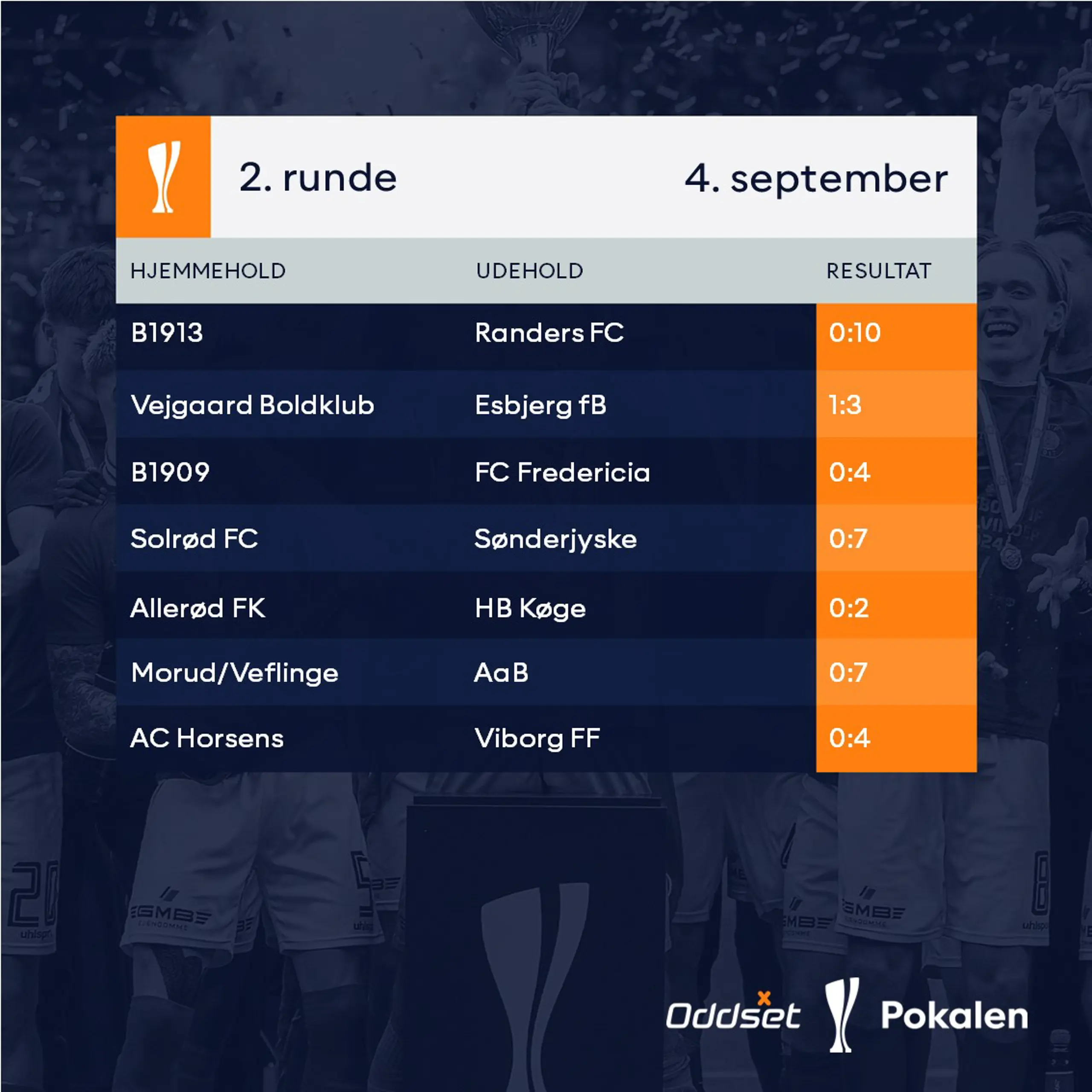 4. september 2024 Favoritsejre og 7 hold videre til 3. runde Der var favoritsejre her til aften, og dermed er yderligere 7 hold klar til 3. runde, og dermed med i bowlen når der på fredag morgen tækkes lod til 3. runde – Drømmen Lever 5. december 2025 De første tre kvartfinaler spillet 30. oktober 2025 Resultatet af lodtrækningen til kvartfinalerne i Oddset Pokalen 29. oktober 2025 Ottendedelsfinaler - 5 hold klar til kvartfinalerne 25. september 2025 FC Nordsjælland videre som sidste hold 24. september 2025 Resultatet af lodtrækningen til 4. runde i Oddset Pokalen
